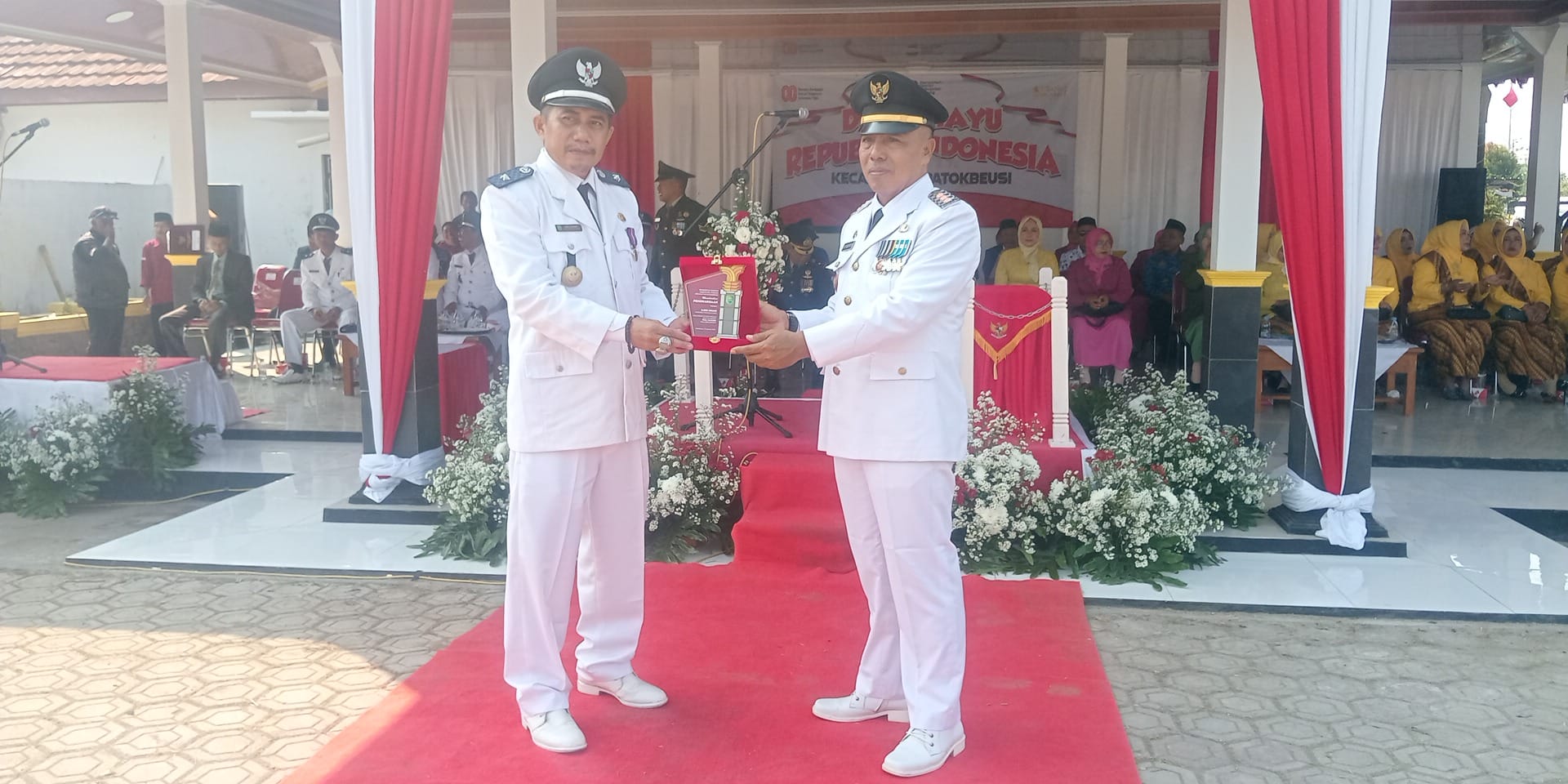 Penyerahan Penghargaan Desa Mandiri diserahkan langsung Camat Patokbeusi Drs.Aep Saepudin di sela-sela upacara peringatan HUT RI ke 80 Minggu 17/08/2025.